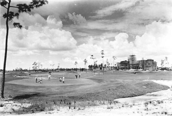 Golfers at the Miami Biltmore Golf Club during hotel construction