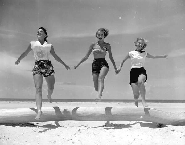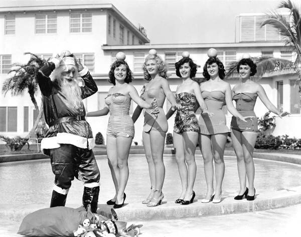Young women celebrate Christmas with Santa Claus: Saint Petersburg, Florida