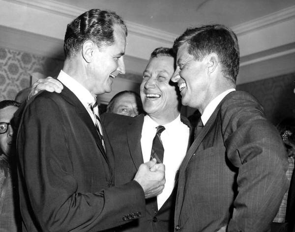 U.S. Senator George A. Smathers talking fun with Governor Collins and President Kennedy