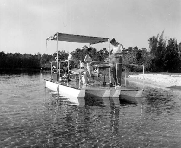 Barbequing on a pier boat: Weeki Wachee Spring, Florida