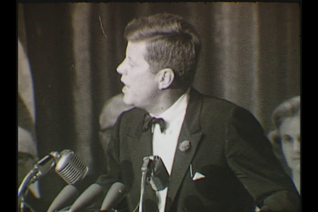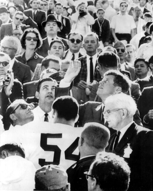 President John F. Kennedy enjoying the Orange Bowl game: Miami, Florida