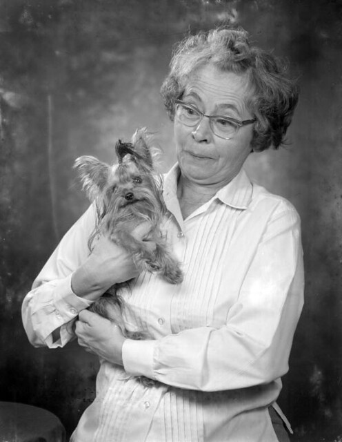 Portrait of Katherine McCrow with a Yorkie dog: Tallahassee, Florida