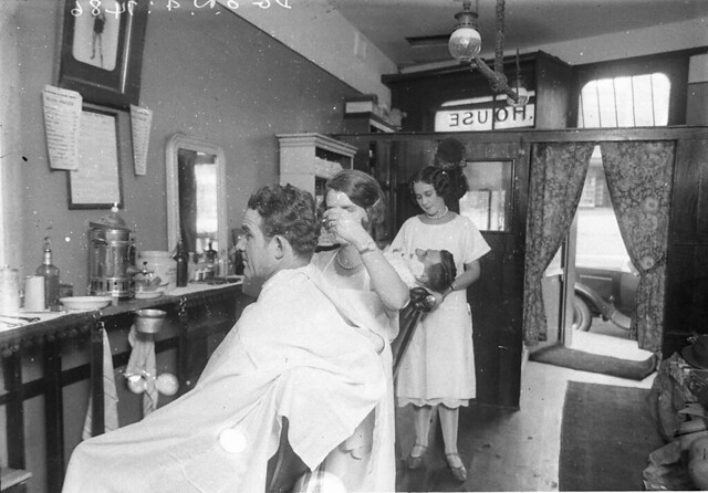 Two of the first female men's barbers, Miss Dolly House and her sister, c.1927 / photographed by Sam Hood