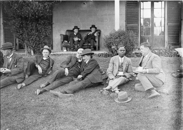 Politicians lolling on the grass at Canberra [i.e. Lanyon House], 1927, by Sam Hood