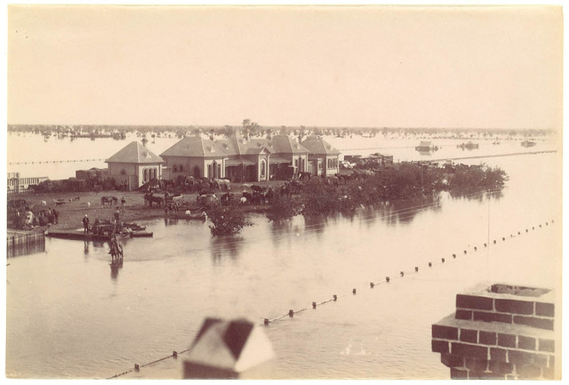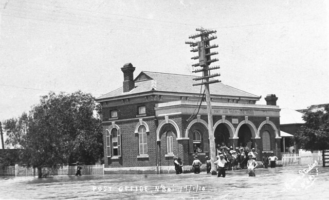 Floodwaters up to steps of Post Office - Narrabri, NSW, 17 January 1910