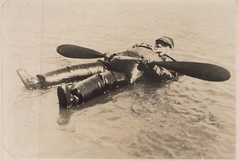 Vincent P. Taylor [in inflatable rubber suit] floating on San Francisco Bay, Sept. 29th, 1926 / Taylor Family photographs