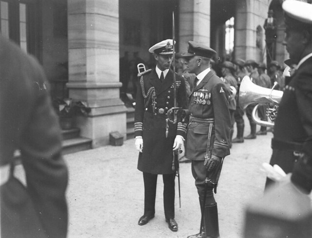 The Duke of York, in captain's uniform, meets decorated officer of the Flying Corps, Geoffrey F. Hughes, Government House, Sydney, 1927 / Sam Hood