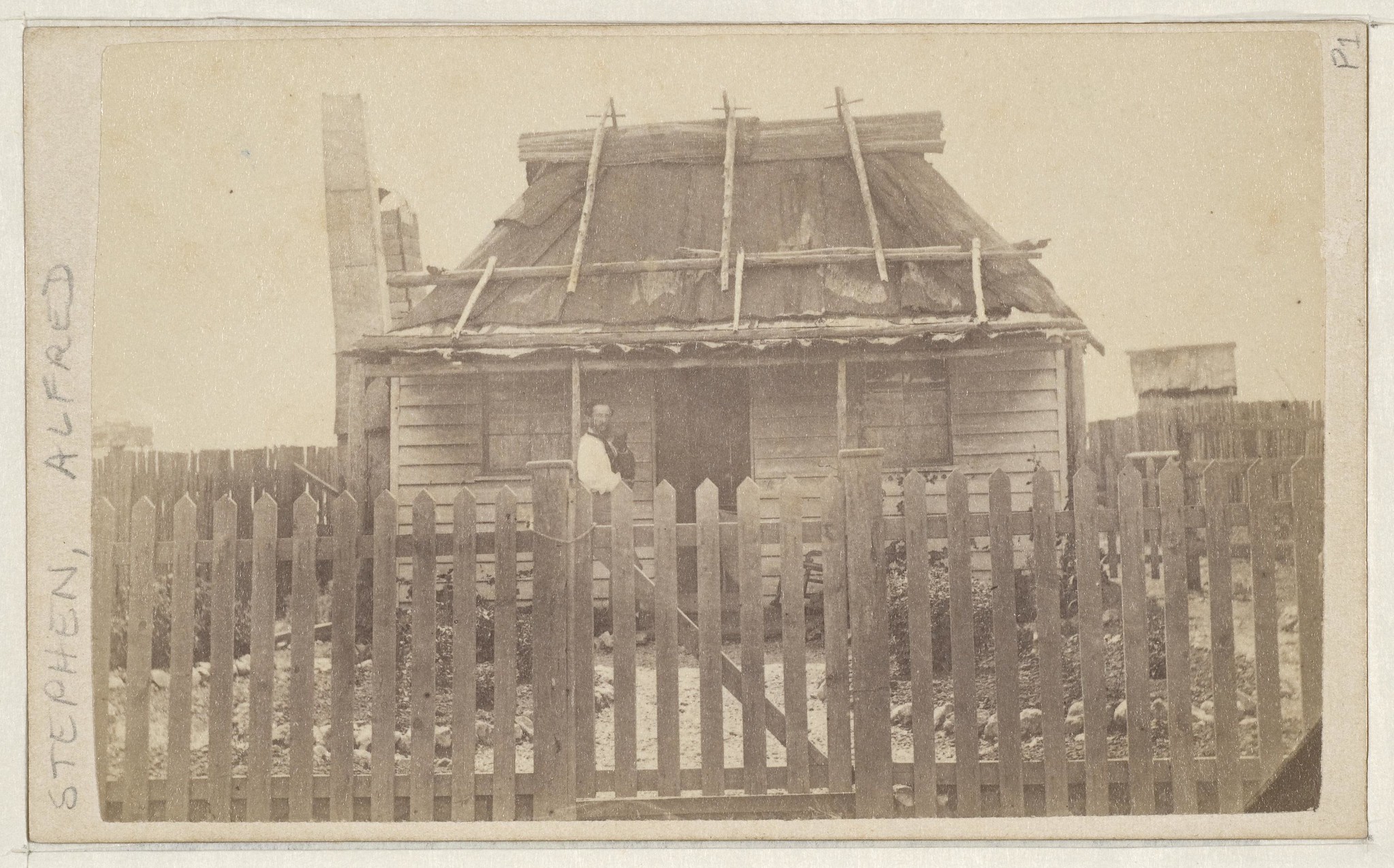 [Weatherboard buildings, Market Street, at the corner of Clarence Street, Sydney], [Dec 1875] / by unknown photographer