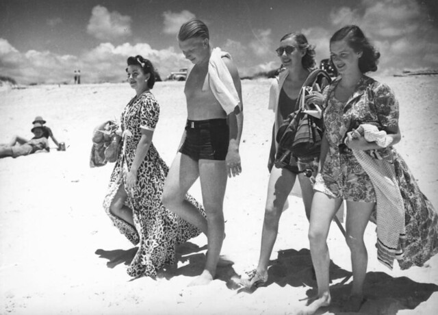 Young woman wearing a swimsuit at Southport, 1940