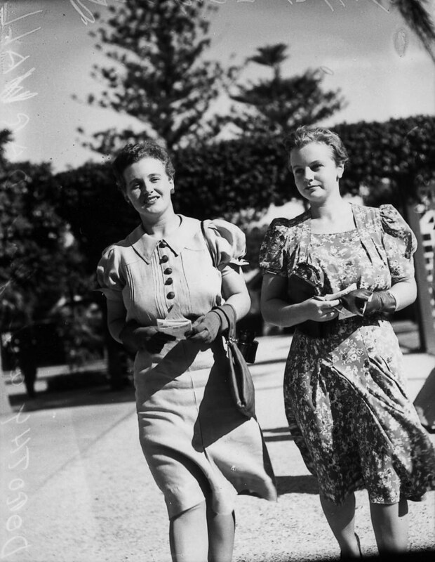 Two young women enjoying a day at the races, Brisbane, 1940