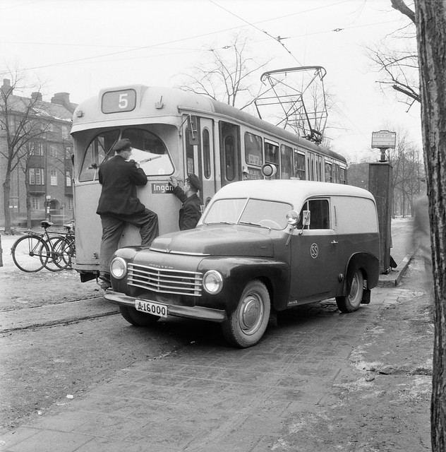 King Gustav VI Adolf visits the Stockholm transport museum in 1963