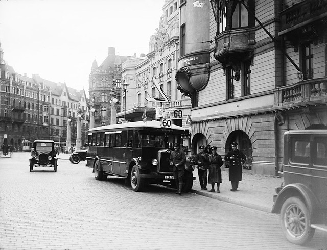 Bus on line no 60 heading for the Stockholm Exhibition on Djurgården, 1930.