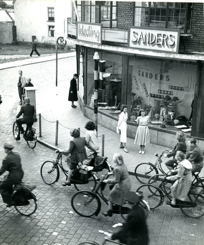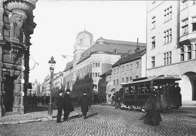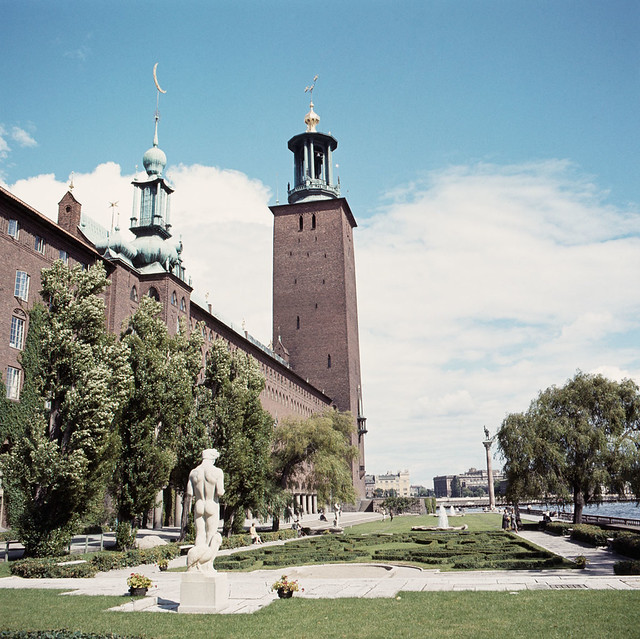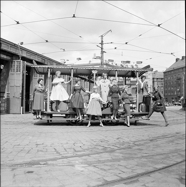 Fashion photography with open horse drawn tram in Stockholm 1959