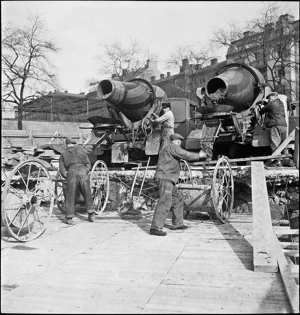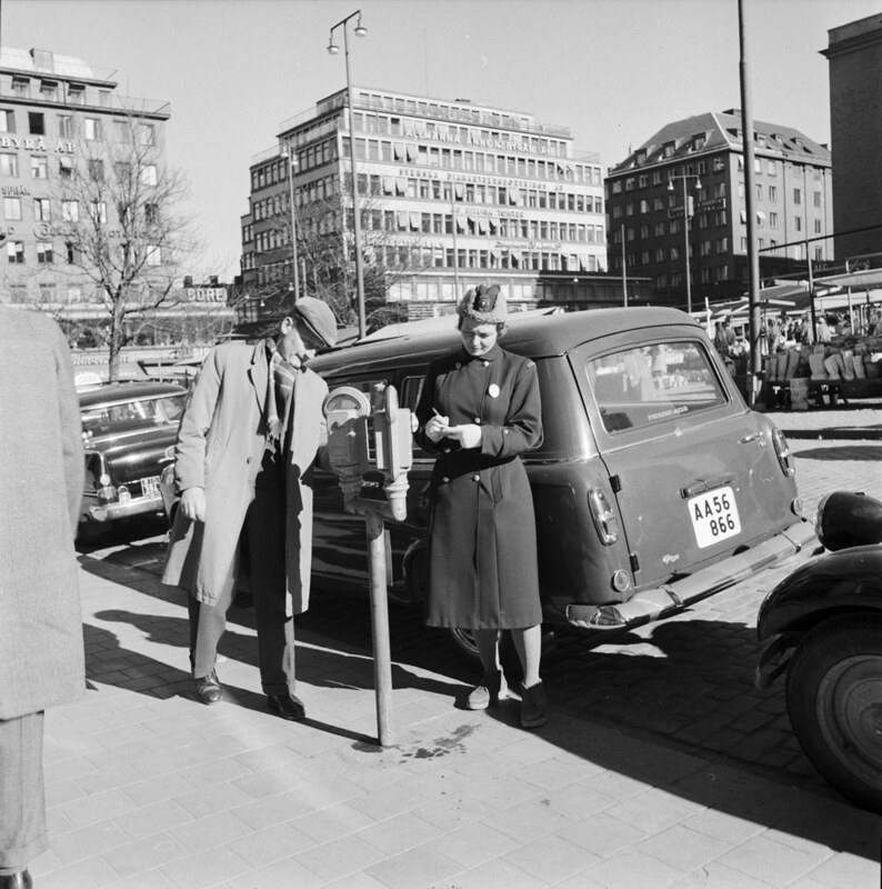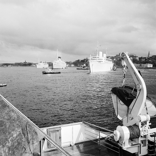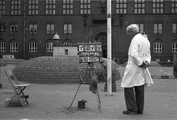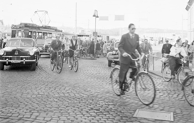 Men waiting for the bus at Skeppsbron in Stockholm 1950