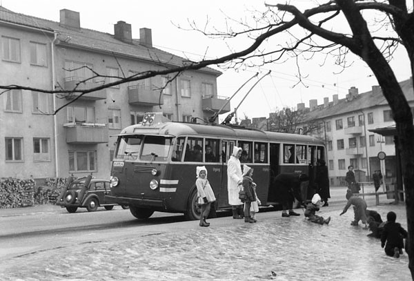 Trolley buses at Gullmarsplan in Stockholm 1964