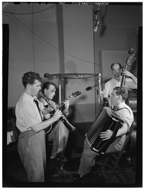 [Portrait of Joe Mooney, Andy Fitzgerald, Gaeton (Gate) Frega, and Jack Hotop, Decca studio, New York, N.Y., ca. Dec. 1946] (LOC)