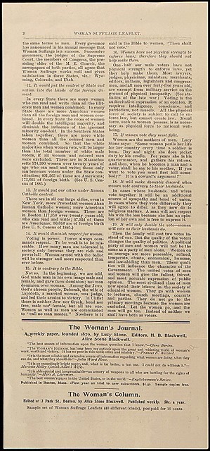 "Objections to Woman Suffrage Answered," by Henry Blackwell, 03/1896 (page 2 of 2)