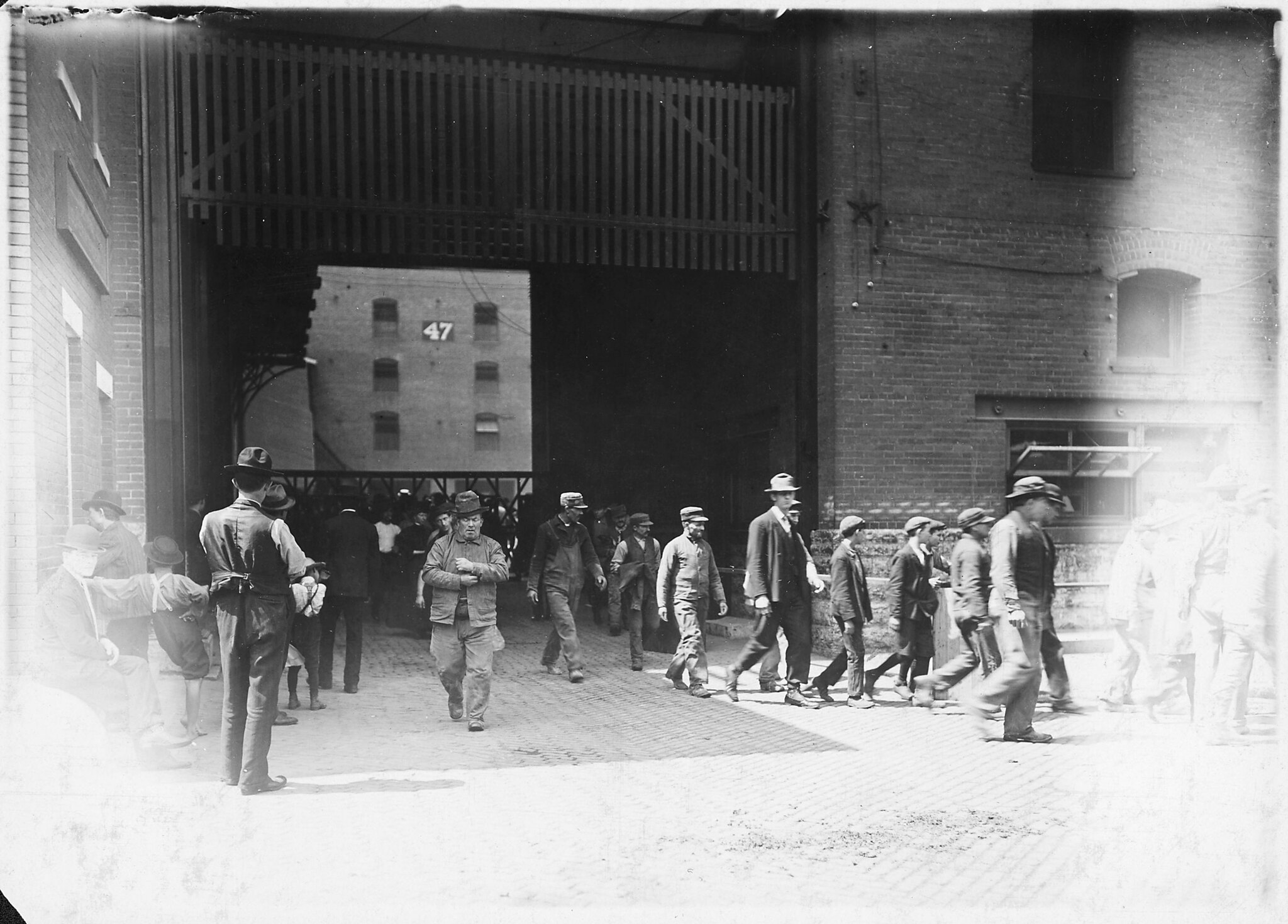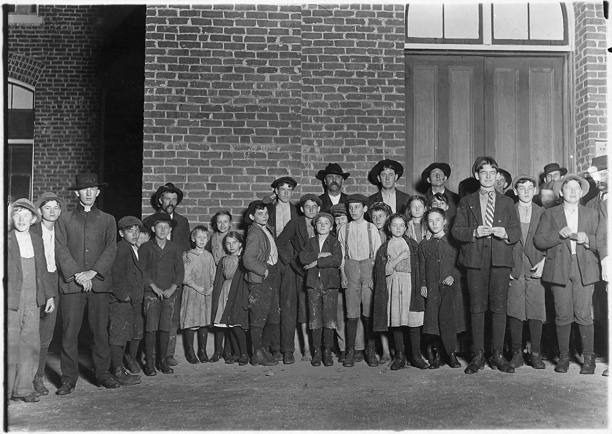 A few of the employees in the Clinton Mills, going home from work. Many others as small were in evidence, December 1908