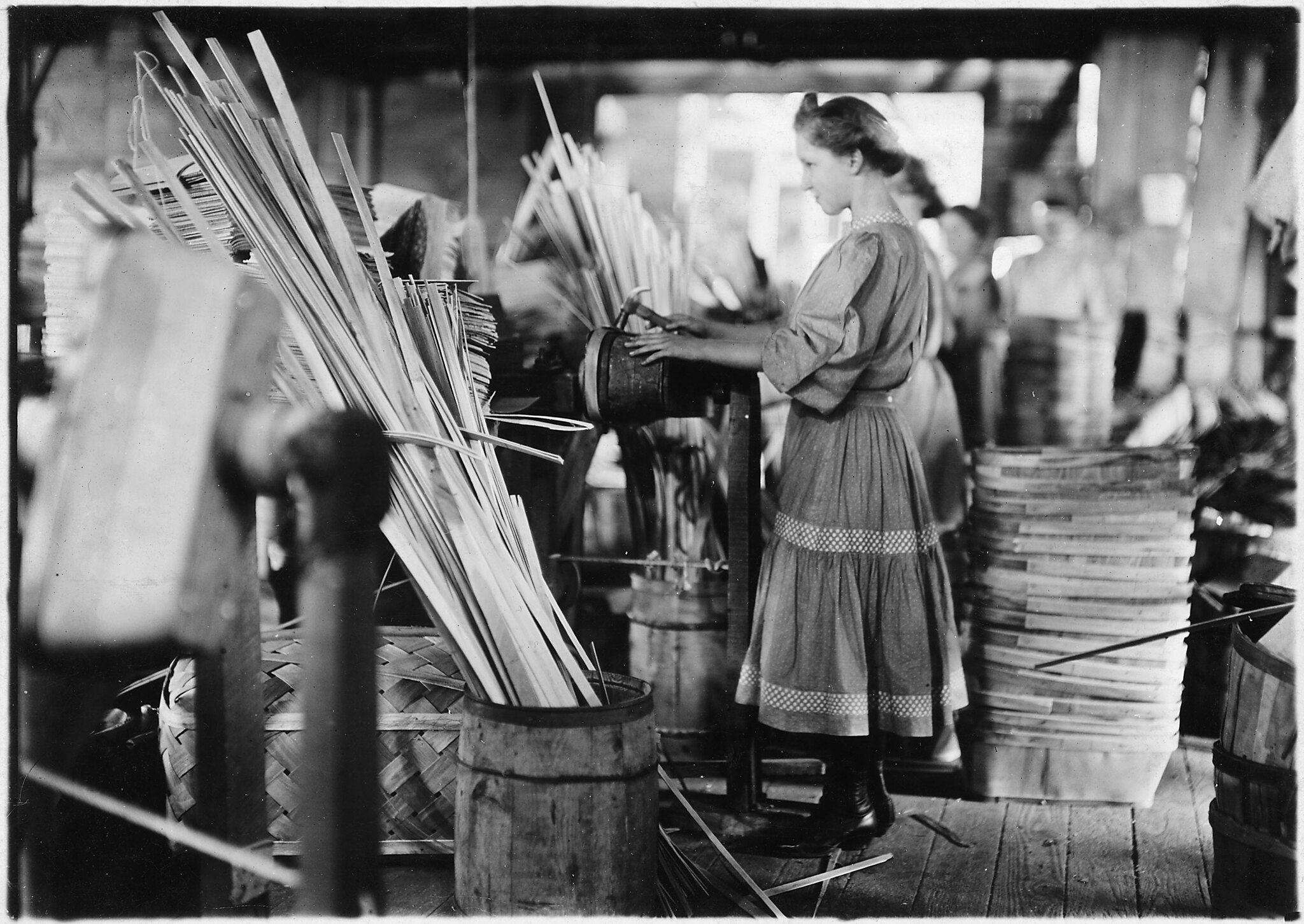A basket factory. Girls making melon baskets. Evansville, Ind, October 1908