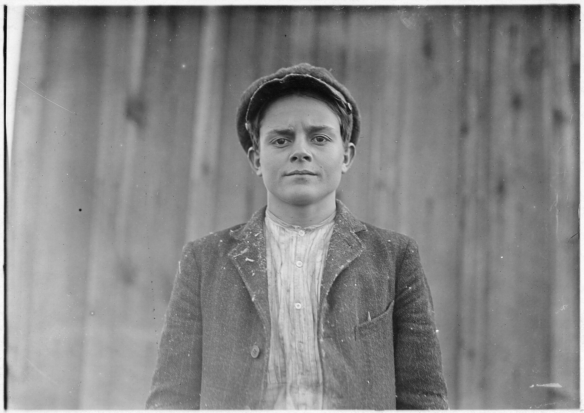 Boy with coat in hand is 11 years old. Been there 9 months, November 1908