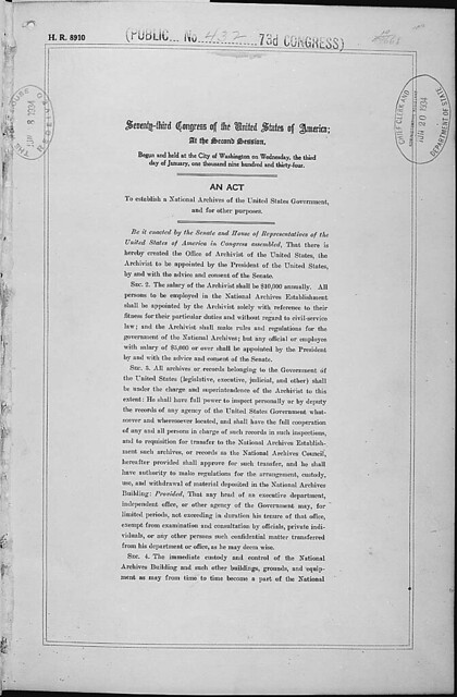 Act of June 19, 1934 ("National Archives Act"), 06/19/1934, Page 1/2