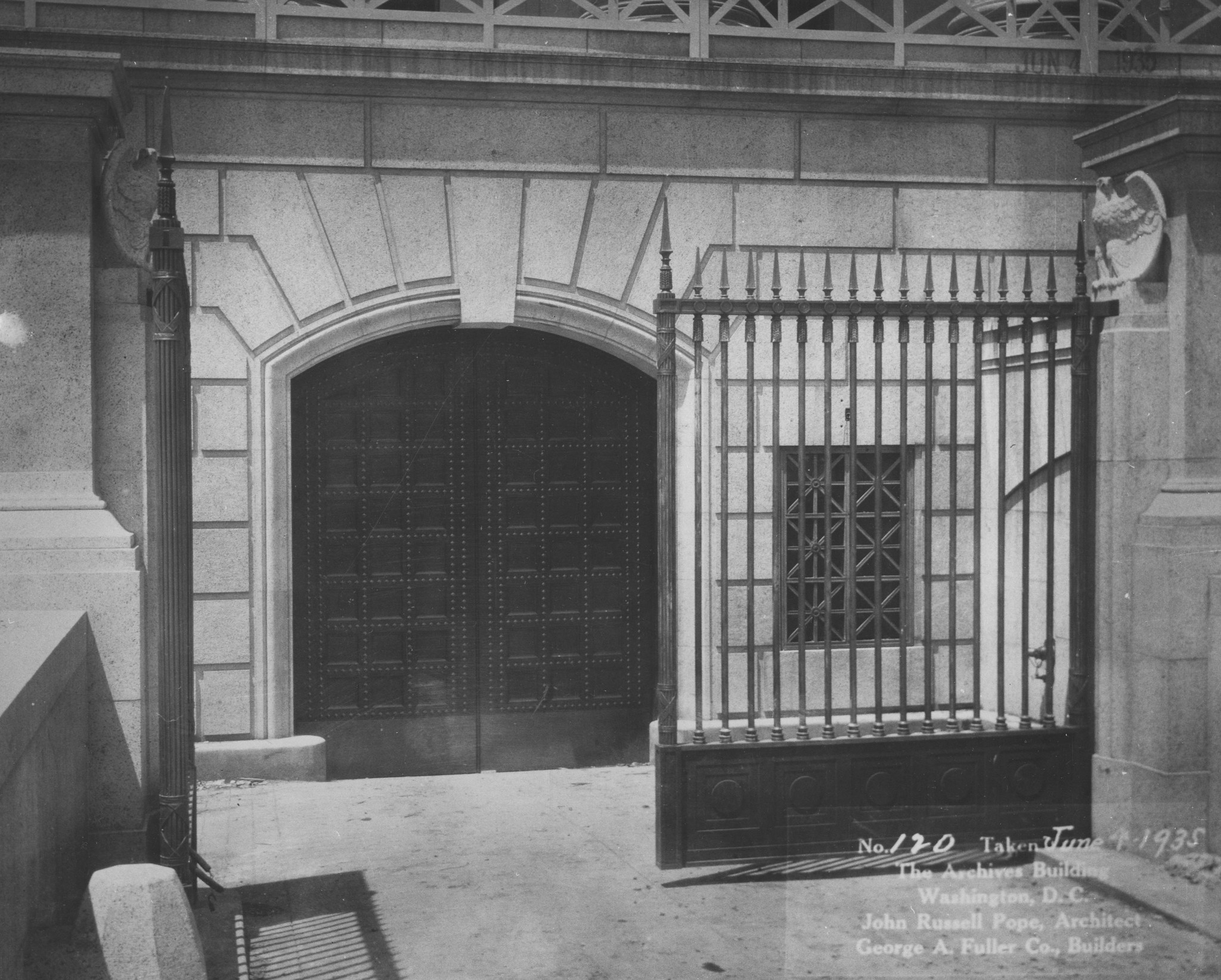 Photograph of the National Archives Building Entrance Doors on Constitution Avenue, 10/23/1935
