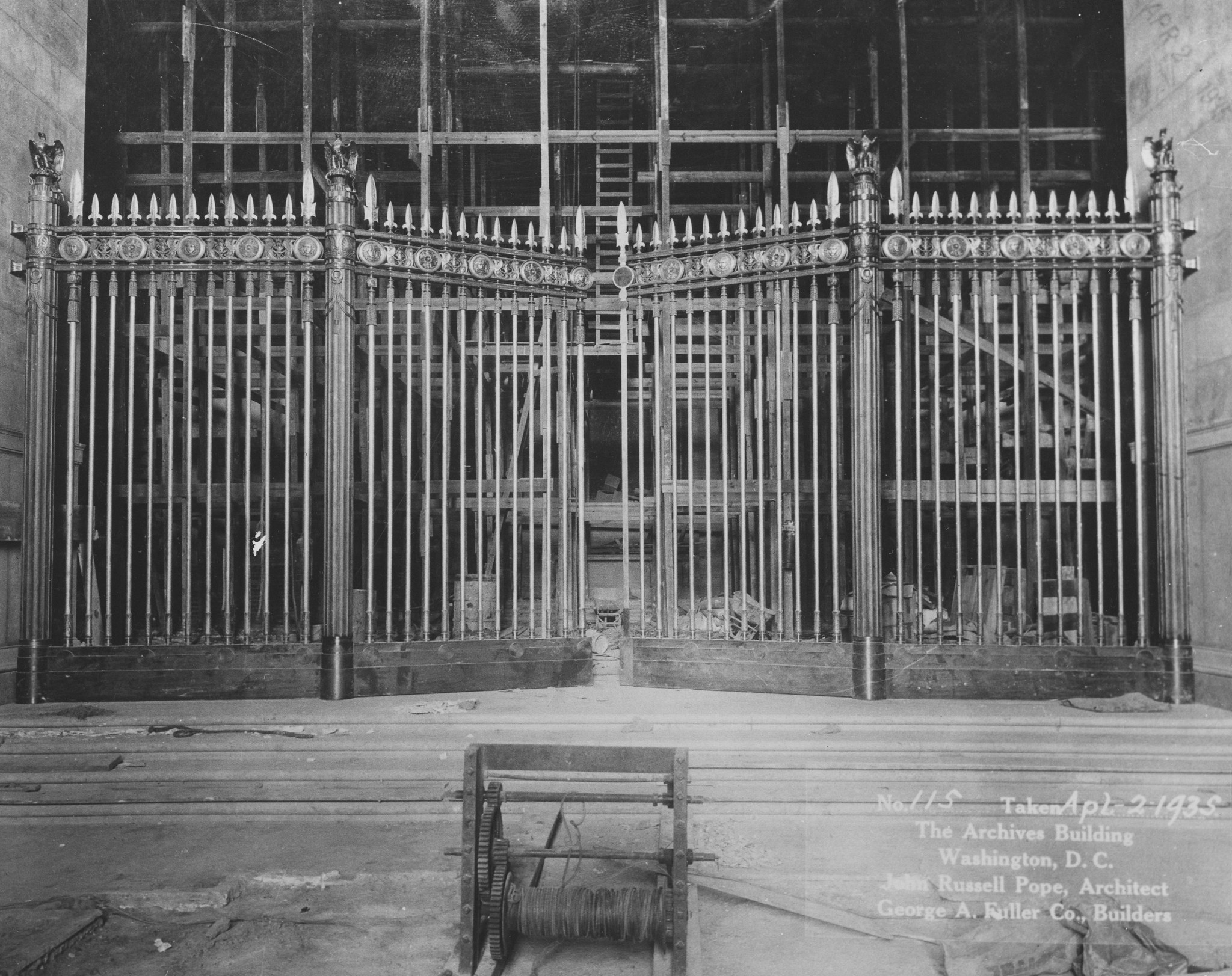 Photograph of Installation of the Gates to the Rotunda of the National Archives Building