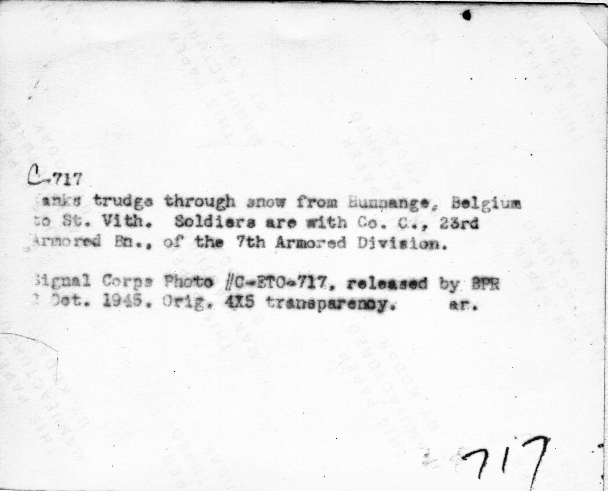 Reverse Side of: Snowsuited Soldiers Walk through the Snow Covered Streets of St. Vith, Belgium (16730733)