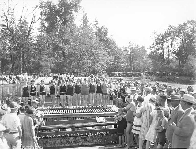 Bathing beauty contest at Schafer Brothers Logging Company annual picnic, Schafer State Park