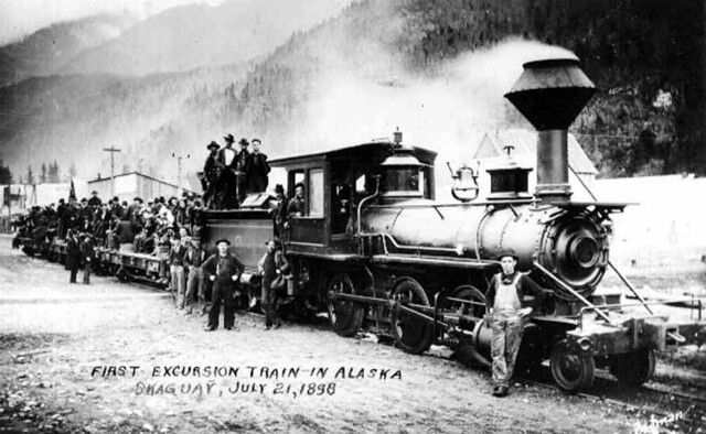 First passenger train of the White Pass & Yukon Railroad en route to the summit, Alaska