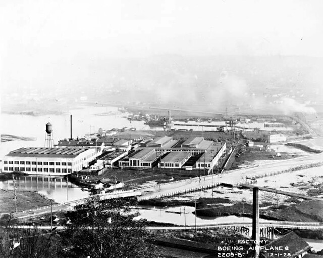 Boeing Airplane Plant on the east side of the Duwamish River, Seattle, Washington