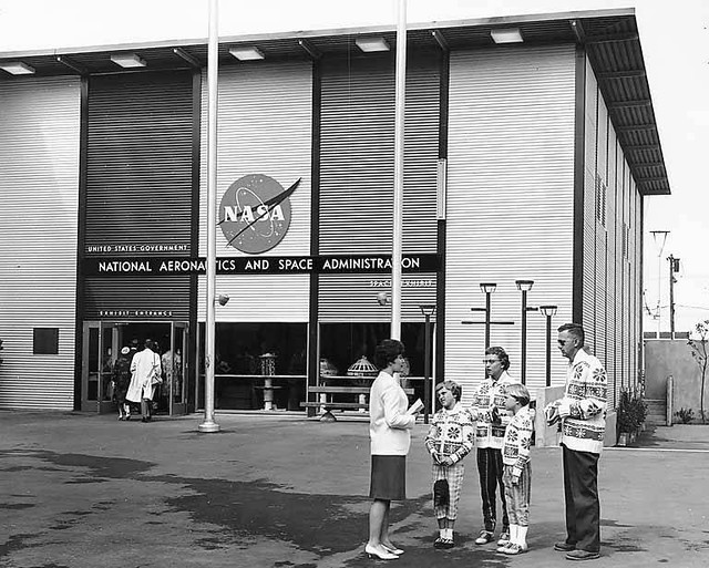 NASA Space Exhibit exterior, NASA's first major attempt to tell the story of the US Space Program graphically, Century 21 Exhibition, Seattle, Washington