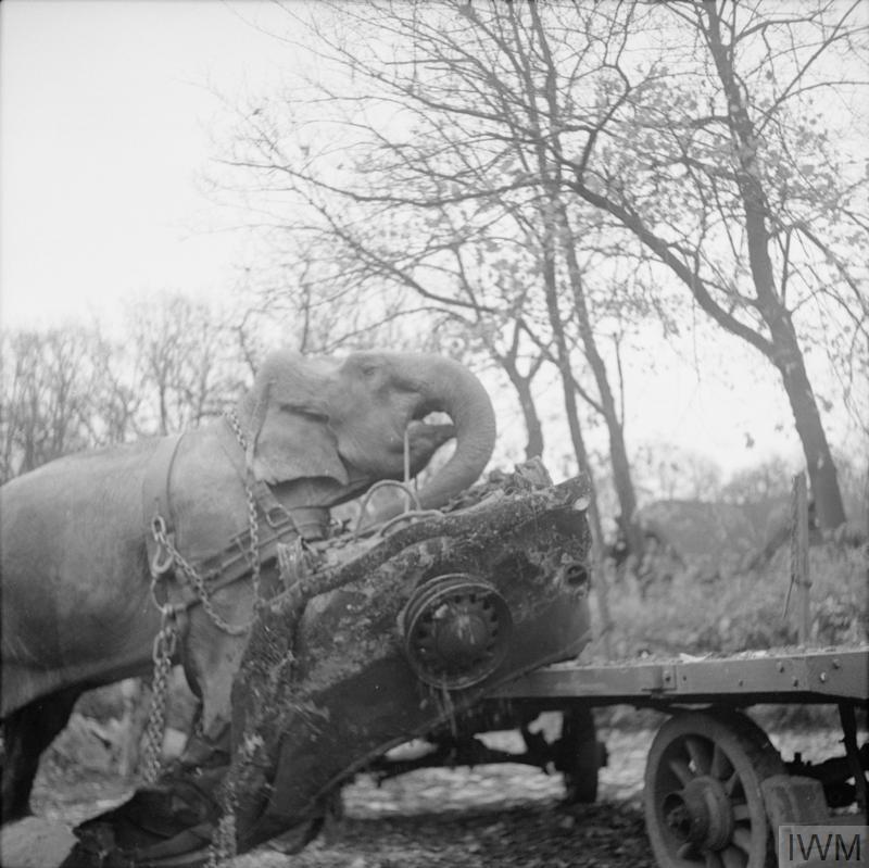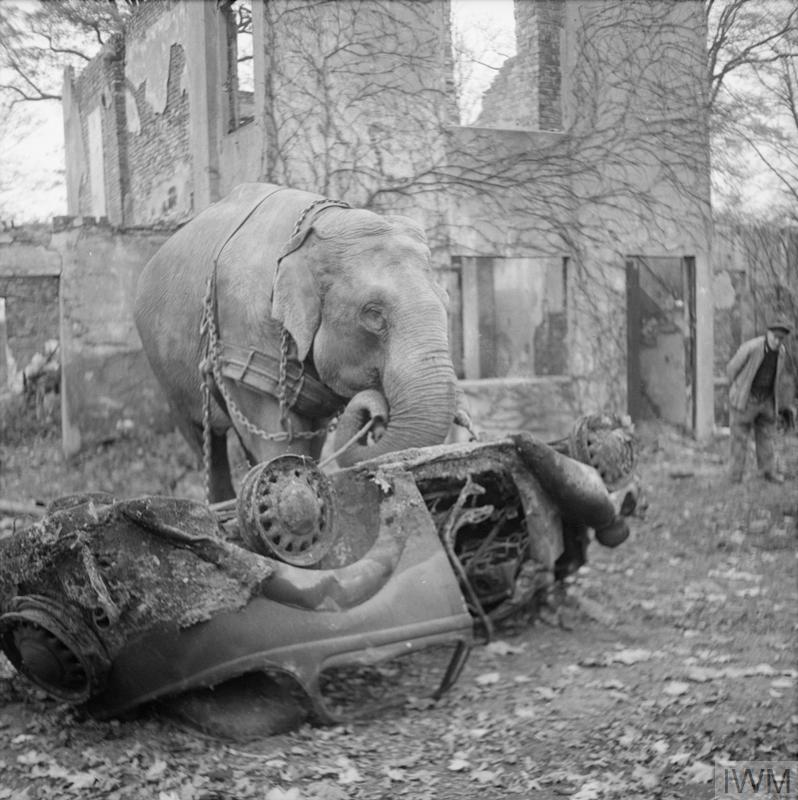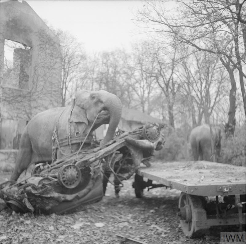ANIMALS AT WAR: CIRCUS ELEPHANTS CLEAR BOMB DAMAGE, HAMBURG, NOVEMBER 1945