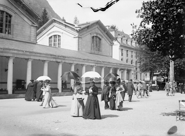 Devant l'établissement [thermal] : Mme Crouzat, ses filles, sa suite, Luchon, septembre 1901