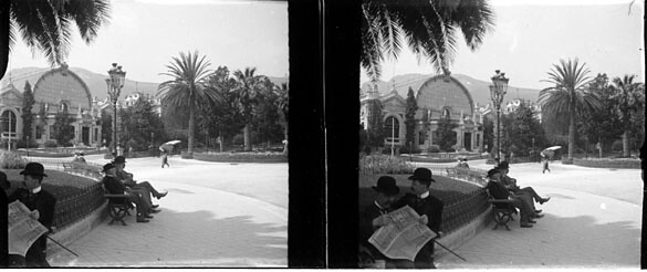 Allée des Palmiers, promeneurs dans les jardins, Monte-Carlo, avril 1905