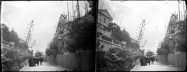 Rue bordée d'agaves et d'un chantier de construction, Monaco, avril 1905