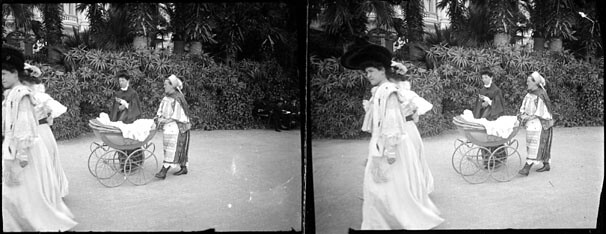 Nourrice Russe poussant un landau dans un parc, Monte-Carlo, avril 1905
