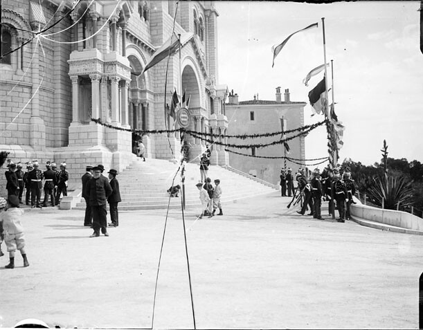 Garde princière, le jour de Pâques, devant la cathédrale pavoisée, Monaco, avril 1905
