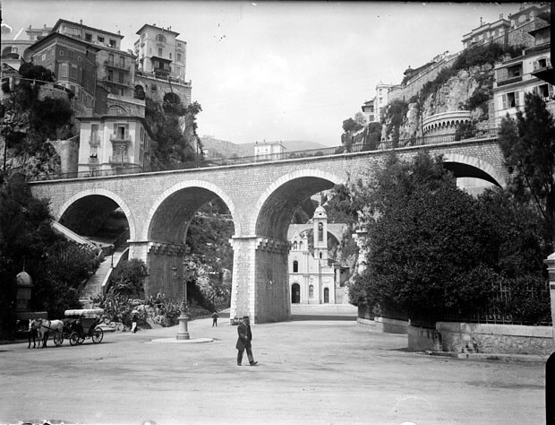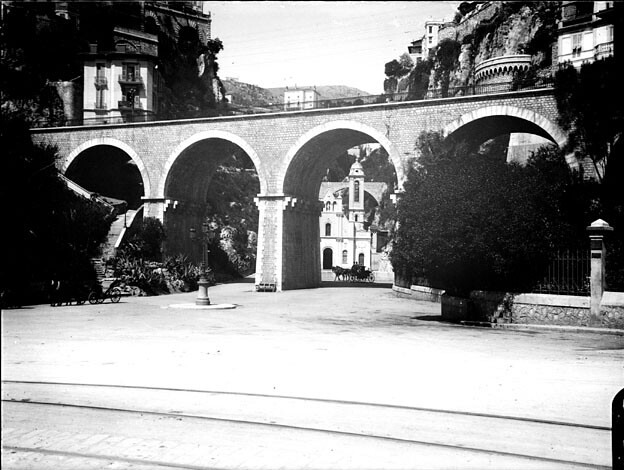 Viaduc avec l'église Sainte-Dévote au second plan, Monaco, avril 1905