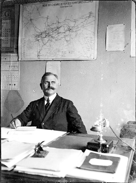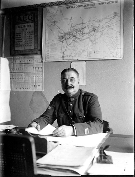 Bureau du chef de gare, Régie des chemins de fer, région d'Essen (Allemagne), décembre 1923