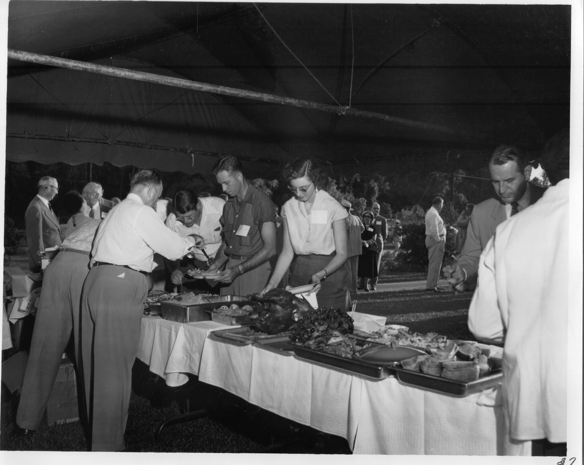 Dollinger Steel Fiftieth Anniversary Guests in Food Line (AC604-1A-016-036)