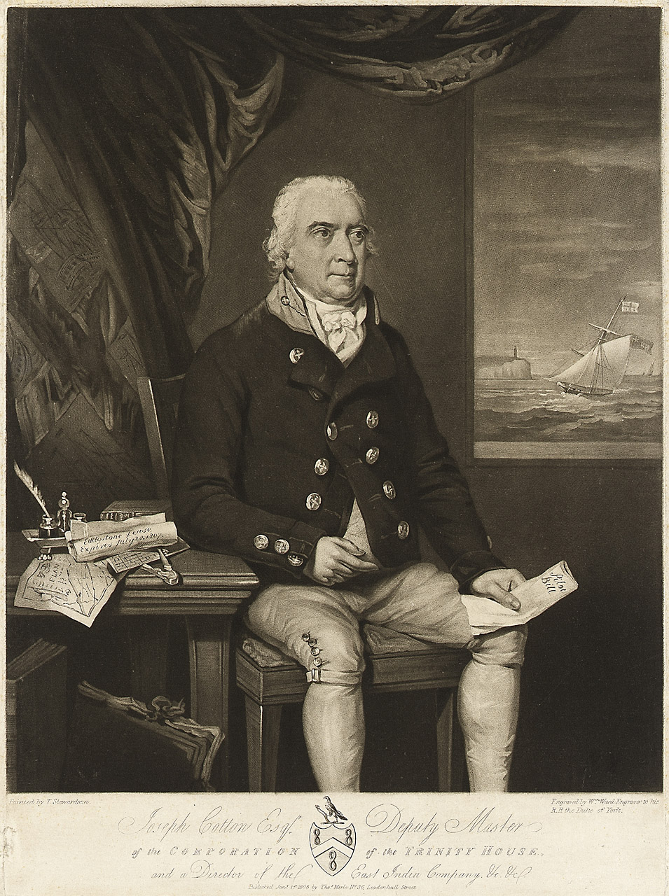 Joseph Cotton F.R.S. Deputy Master of the Trinity House. Print. Joseph Cotton (1746-1825) was appointed Deputy Master of Trinity House in 1803. He served as a Director of the East India Company between 1795 and 1823. For several years he was also the Chai