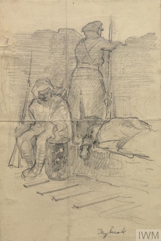 Costumes of the British Army In Flanders : Officer and men leaving the trenches on relief