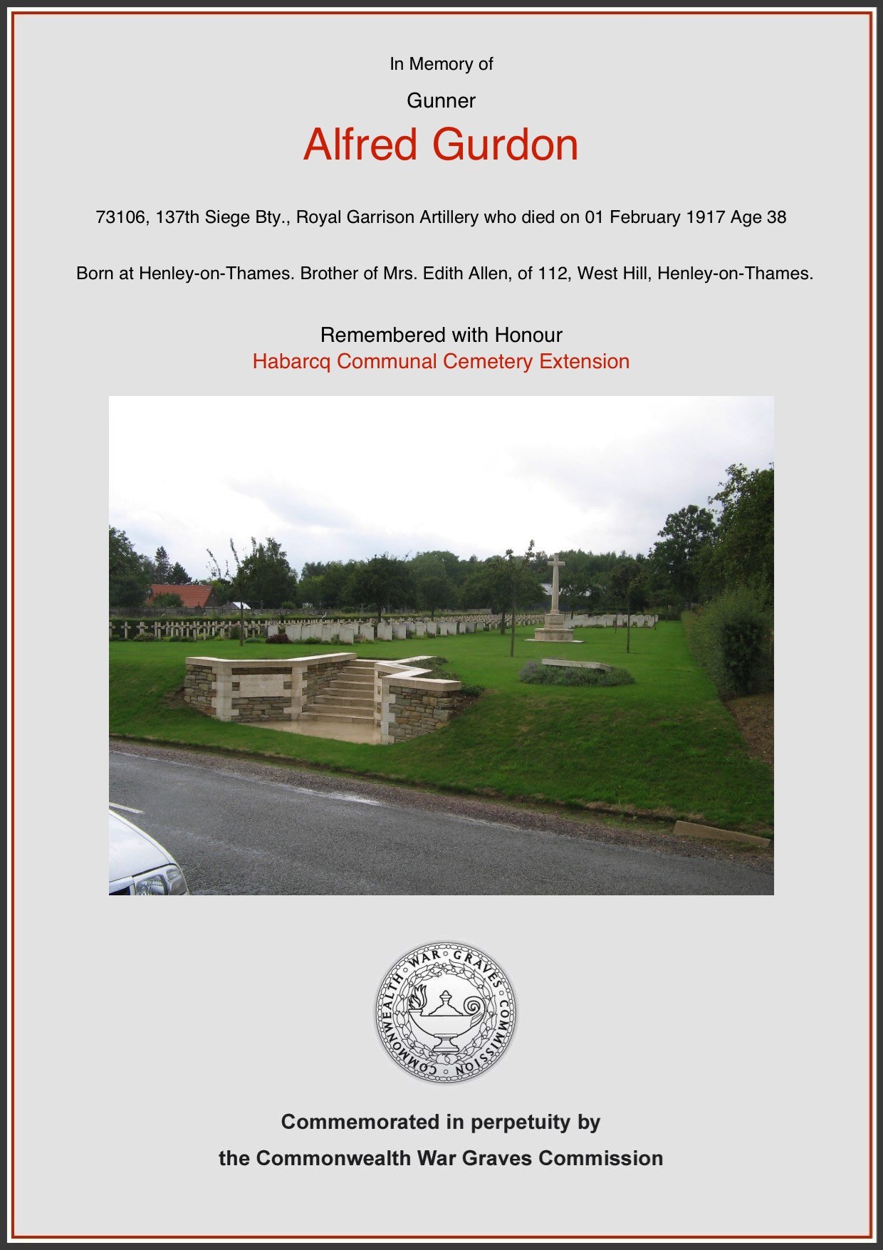 Gunner Alfred Gurdon 73106, Royal Garrison Artillery