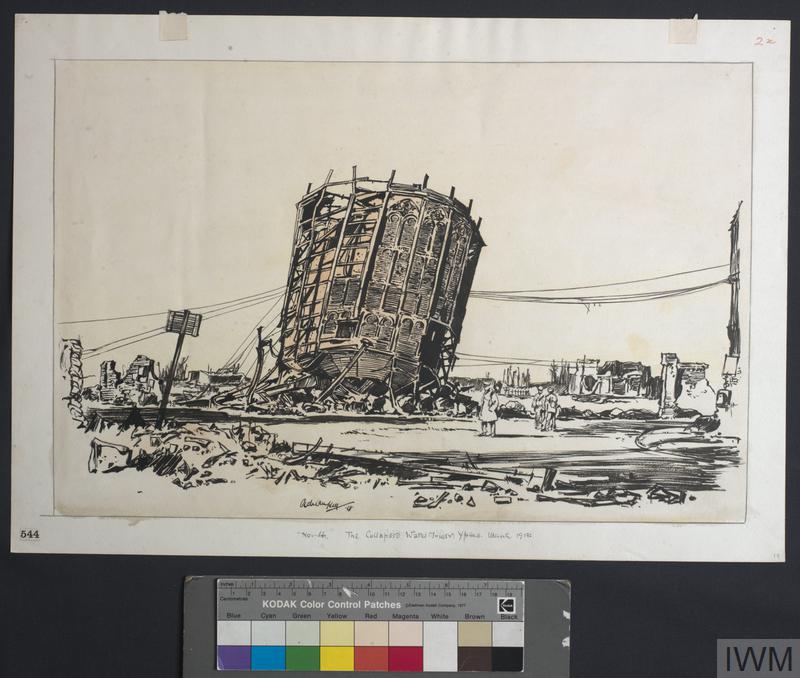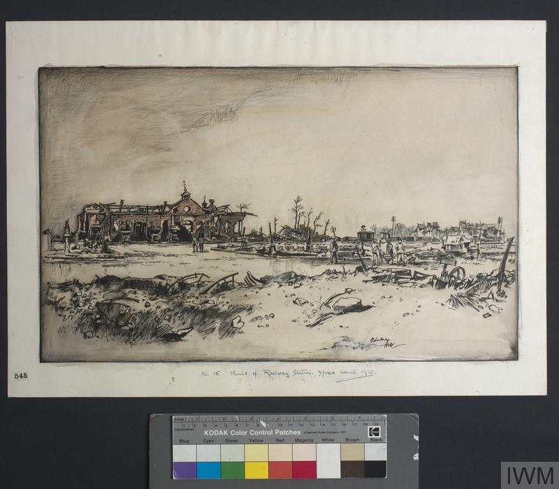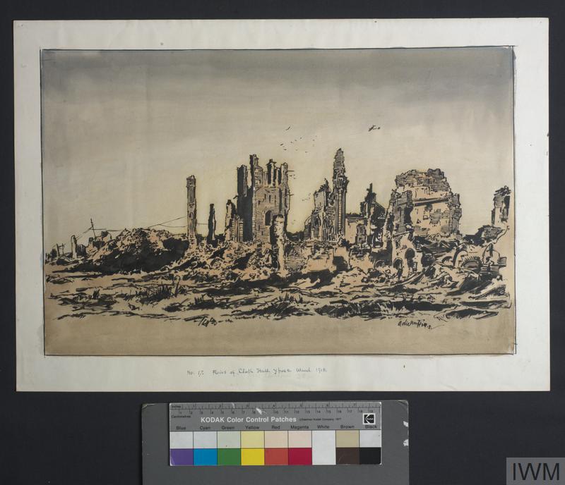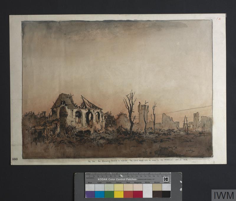 An Evening Scene In Ypres : the Cloth Hall in the distance, March 1918