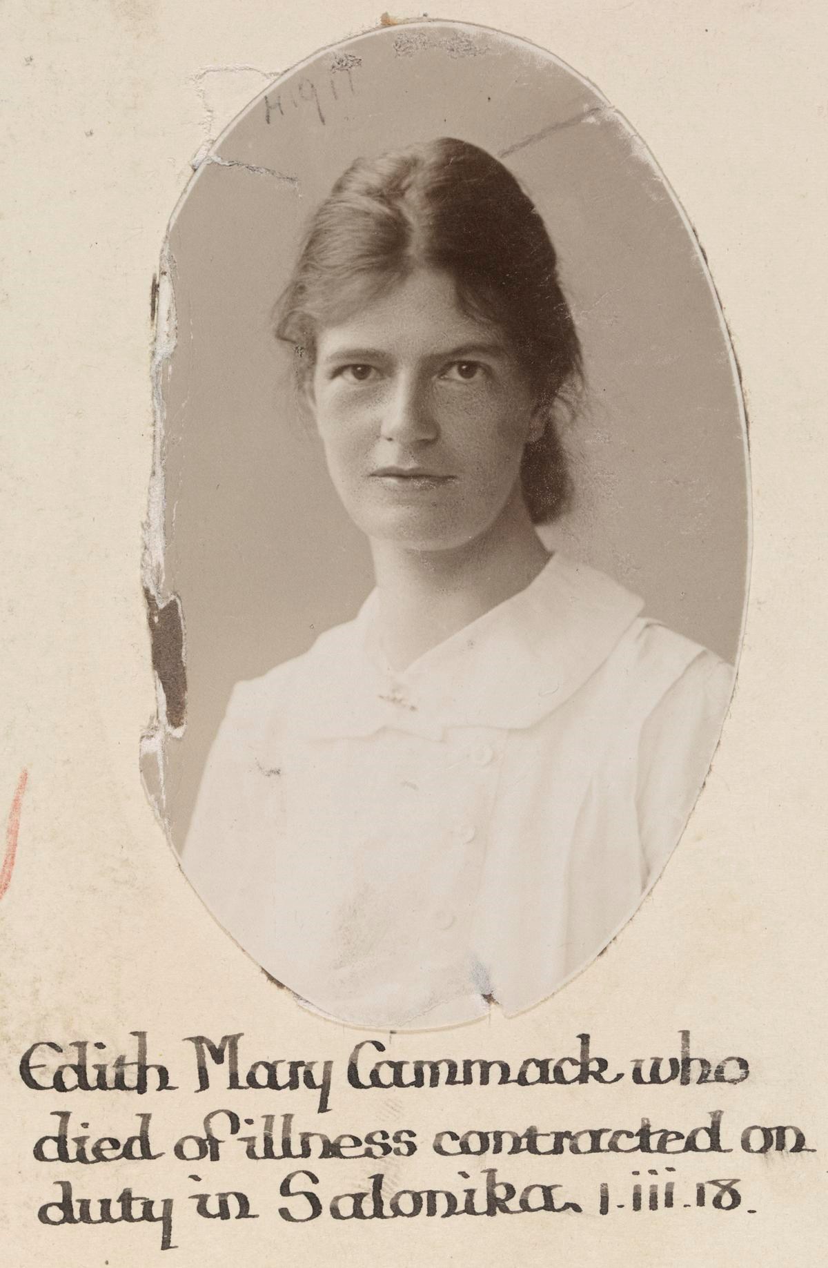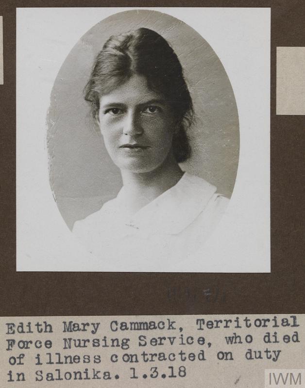 Staff Nurse Edith Mary Cammack, Territorial Force Nursing Service. Died of illness contracted on duty 01 March 1918.