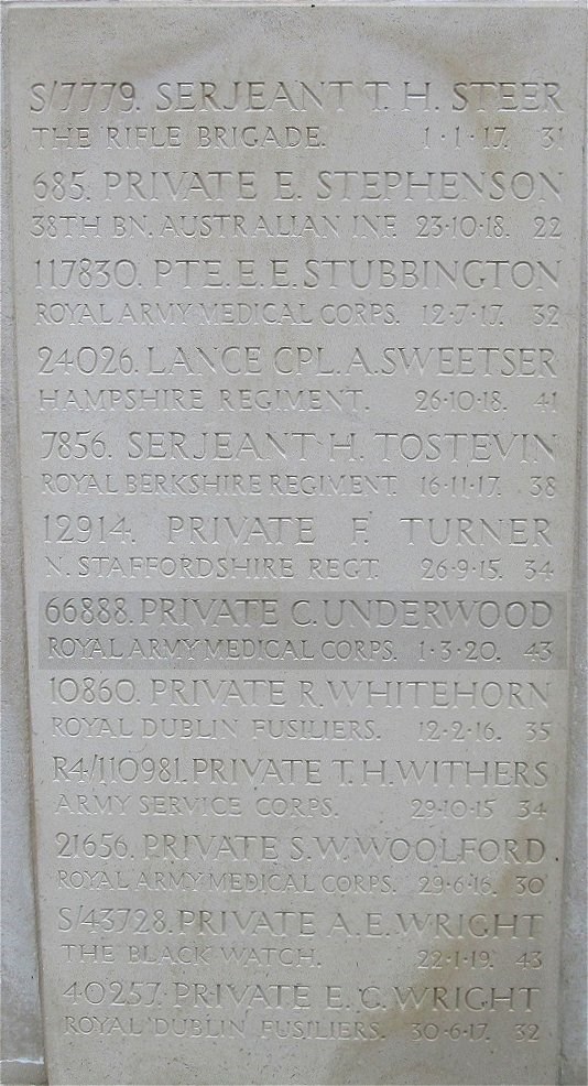 Private Charles Underwood 65888, Reading War Hosp. formerly 140th Field Amb.