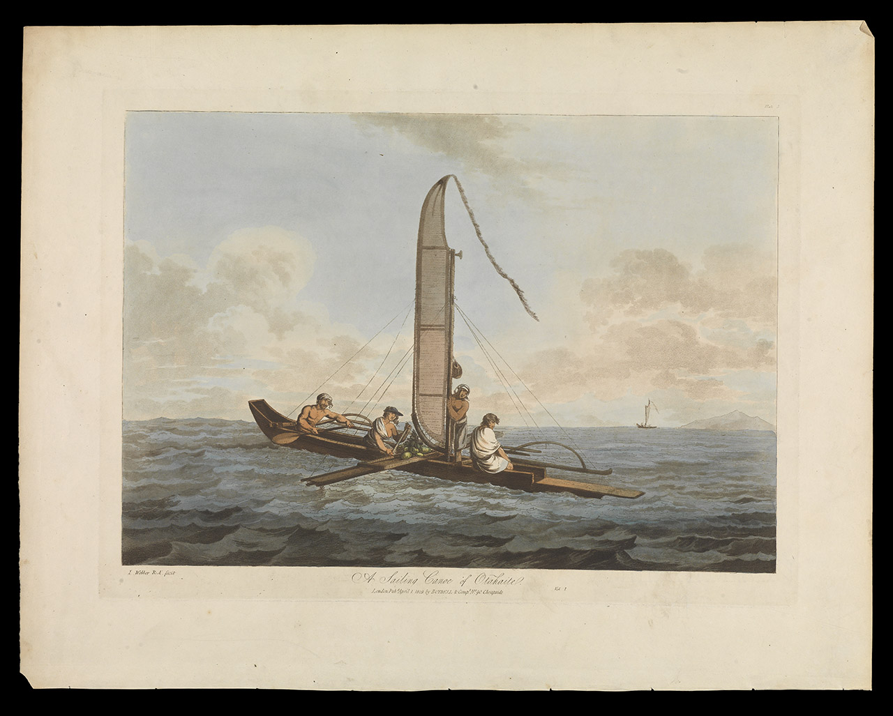 Views in the South Seas... A sailing canoe of Otahaite. Hand-coloured.; Text to plate on separate sheet.; Plate III.