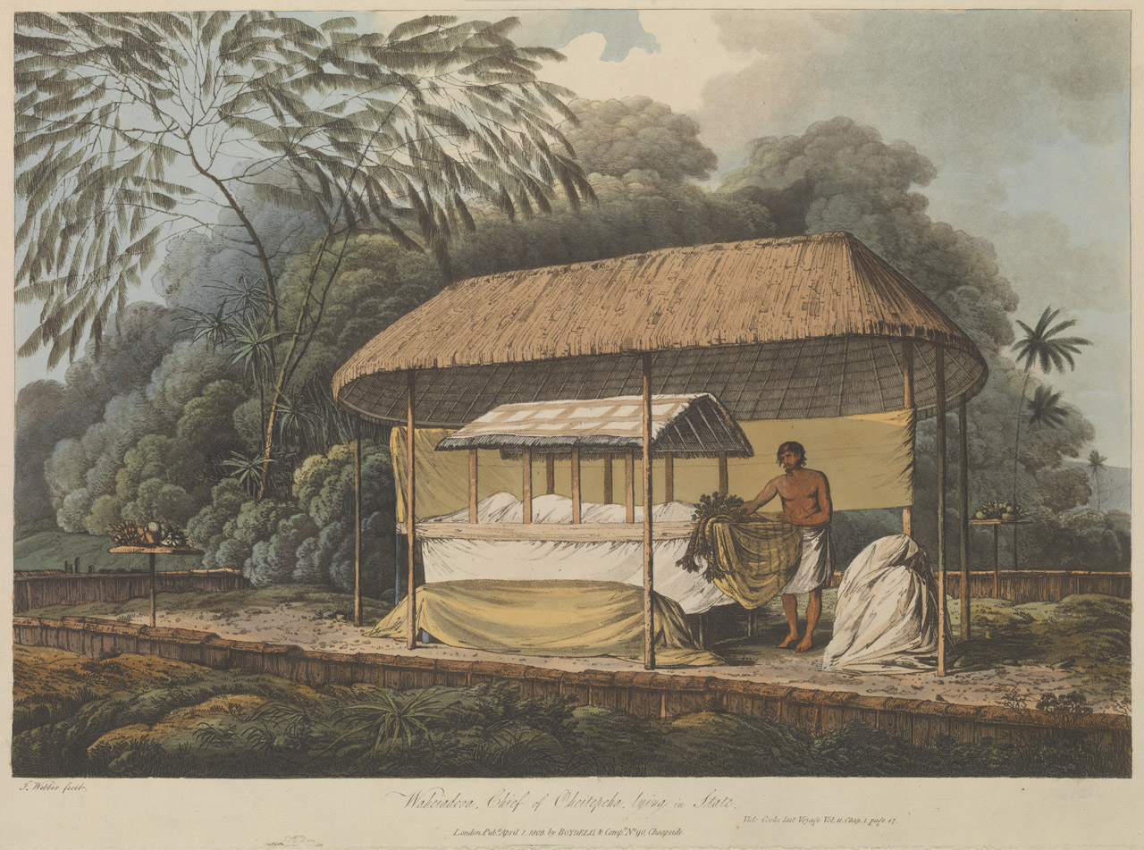 Views in the South Seas... Waheiadooa, Chief of Oheitepeha, lying in state. Hand-coloured.; Text to plate on separate sheet.; Plate VI.