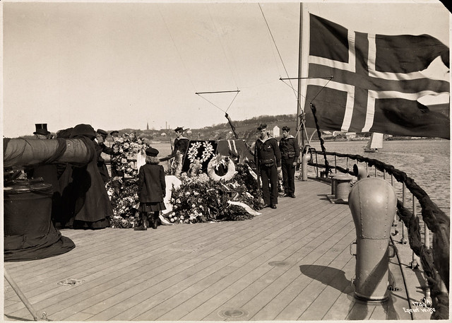 Bjørnsons båre fraktes med panserskipet "Norge" fra København til Kristiania.